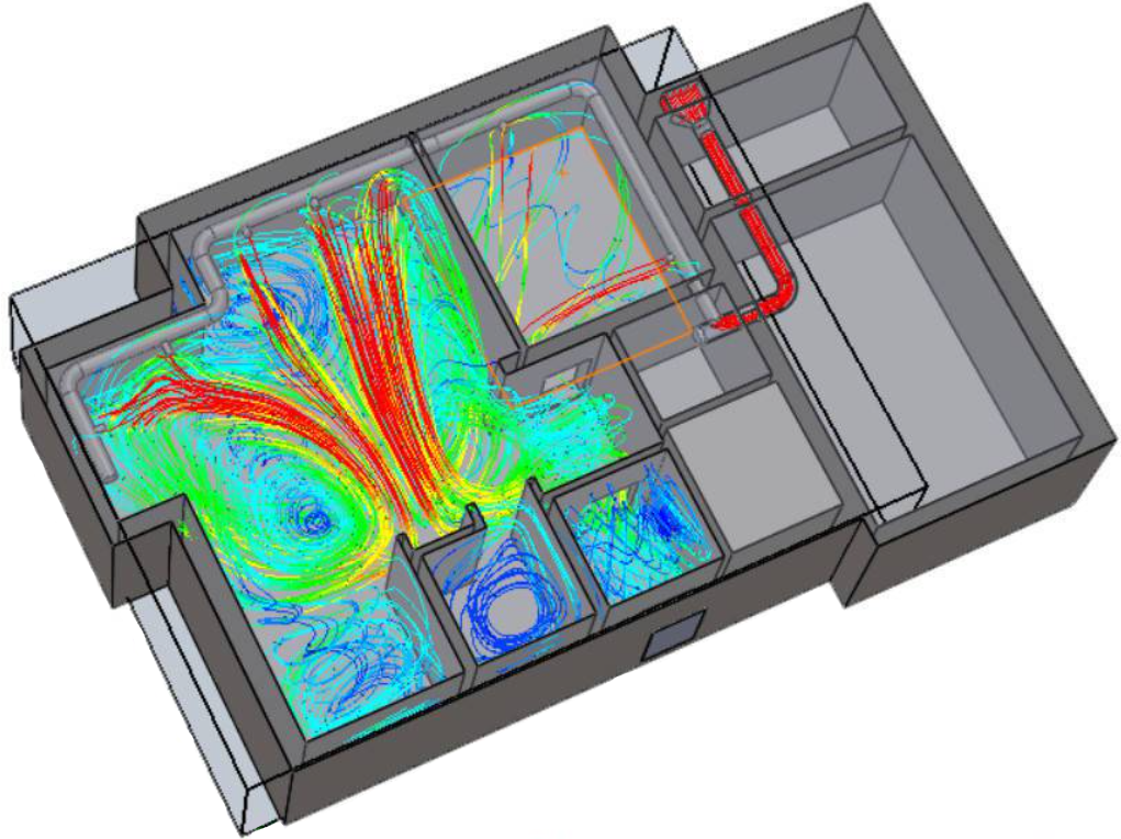 – Оценка распределения воздушного потока внутри зданий (оценка эффективности систем кондиционирования и вентиляции).